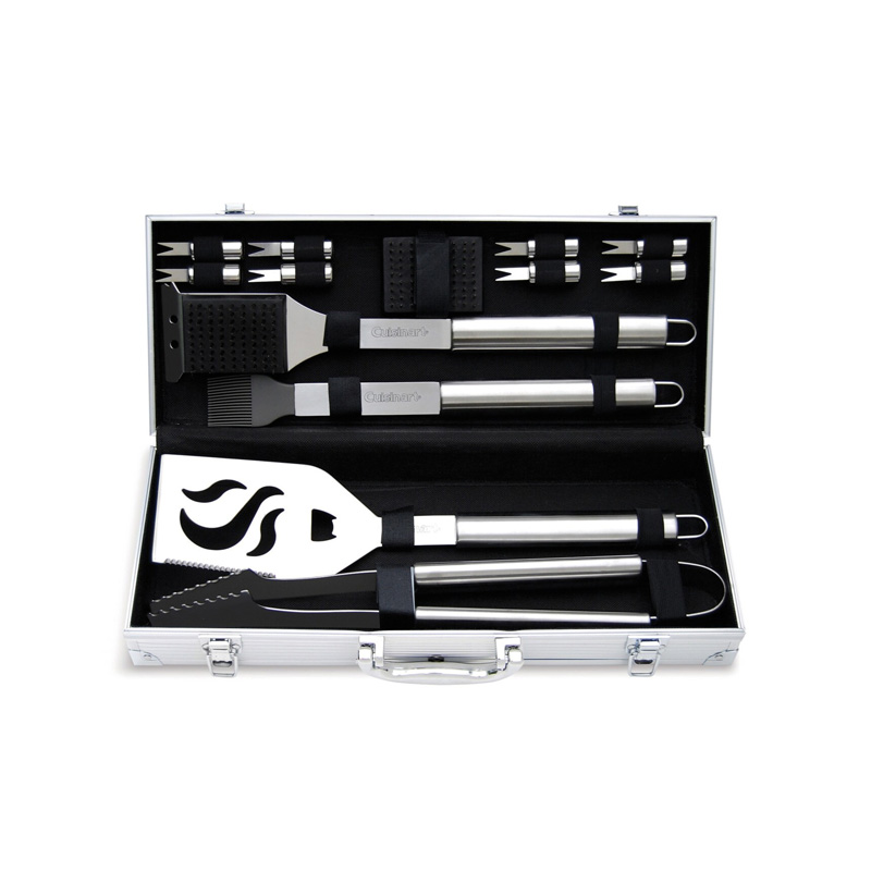 The Cuisinart® Deluxe 14 Piece Grilling Tool Set includes all the necessary tools to make your grilling experience easy and convenient.